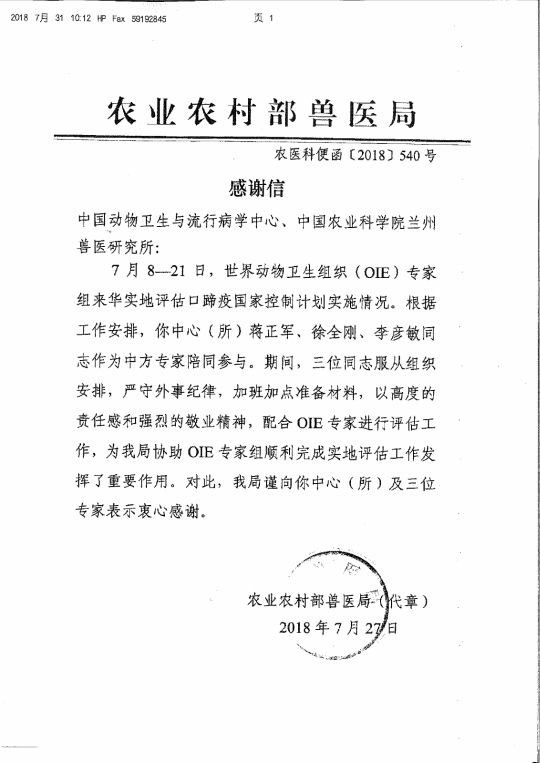OIE/国家口蹄疫参考实验室