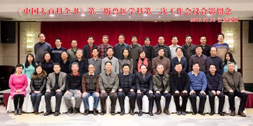 根据编写工作计划安排,受中国大百科全书出版社委托,《中国大百科全书》(第三版)兽医学卷主编刘秀梵院士于2016年1月30~31日在扬州大学主持召开了编委会第二次工作会议。兽医学卷主、副编和14个分支学科主、副编及中国大百科全书出版社王亨主任、刘冬编辑与会参加。本次工作会议的主题是“讨论确定兽医学卷的体例、各分支条目及各自的样条条目,并进一步推荐落实各分支编写组成员”。刘秀梵主编首先总结了2015年10月30日第一次编委会会议以来的工作进展,接着由中国大百科全书出版社王亨主任演示解读了中国大百科全书第三版的编写体例和样条试写要求,并由各分支主副编分别对各自学科拟写条目的选择、编制原则及相关问题进行了说明。在此基础上,兽医学卷常务副主编陆承平教授对初步汇总的各分支学科条目的适宜性、实用性和学术性等关键问题进行了评议,对初拟条目的修改要求进行了详细说明和建议。各分支主、副编在此基础上分别按学科进行讨论,确定了修改原则和目标计划,并提出样条试写条目、样条试写撰稿人及其工作进度计划,提出了各分支的编写组成员名单,待出版社进行资格审查后予以聘任。确定在2016年2月底前完成各分支条目的修订,3月20前完成样条试写,4月20日前后召开编委会第三次会议。