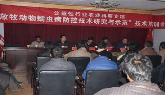 2016年4月7~9日,由我所主持的国家公益性行业农业科研专项“放牧动物蠕虫病防控技术研究与示范”项目组主办、国家肉牛牦牛产业技术体系协办、玛曲县动物疫病预防控制中心承办的“牛羊寄生虫病防控技术培训班”在玛曲县畜牧兽医局举行,我所家畜寄生虫病创新团队周东辉副研究员、寄生虫与虫媒病创新团队李有全研究员一行前往。本次培训班是为了增强县级动物疫病防控部门、基层兽医站技术人员、乡村队防疫人员对牛羊寄生虫病危害严重性和防治重要性的认识,有效提升基层牛羊寄生虫病防控水平,促进放牧牛羊养殖业的可持续发展。
