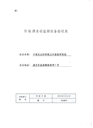 根据《污染源自动监控管理办法》等相关规定,兰州市环保局于2015年2月4日对兰州兽医研究所污水站出水口“污水在线监测项目”进行了现场验收。参加此次验收的有兰州市环保局、兰州市环境监测站、兰州市环境监察局、城关区环境监察局、设备供应商及本所运保中心相关技术人员等。