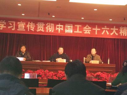 会上,甘肃省总工会宣教部王勇智部长就《学习宣传和贯彻落实工会十六大精神》作了理论性的辅导和讲解,王部长强调说:“我们学习宣传和贯彻落实工会十六大精神,就是要学习‘必须始终坚持工会工作把握正确的政治方向,必须创新新形势下职工群众工作,必须倡导辛勤劳动、诚实劳动、创造性劳动,必须切实维护职工合法权益,必须弘扬社会主义法治精神,必须以改革创新精神推进工会建设’的思想,把工会的各项工作落到实处。”