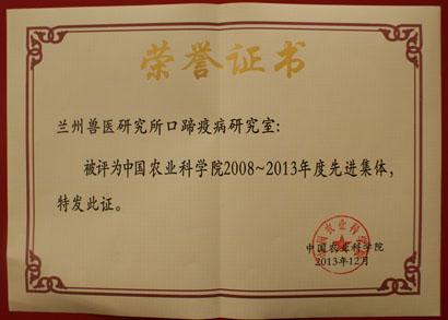 在1月13日~14日召开的中国农业科学院2014年工作会议上,我所口蹄疫病研究室被授予“中国农业科学院2008~2013年度先进集体”荣誉称号。