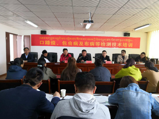 开幕式由自治区疫控中心拉巴次仁副主任主持,首先尼玛群宗主任发言指出,虽经过多年努力取得一定的成效,但全区基层兽医实验室工作人员的技术水平仍有不足,希望借助此次培训,能够为全区广大基层兽医工作人员带来好技术、好思路、好办法、好收益。随后我所朱培德主任代表研究所发言,感谢自治区兽医局、疫控中心对本次培训班的大力支持。最后付宝权副局长代表自治区兽医局讲话,强调全区动物疫病防控工作依然任重而道远,希望通过本次培训班,能够让大家学以致用,更好响应国家服务三农的政策。