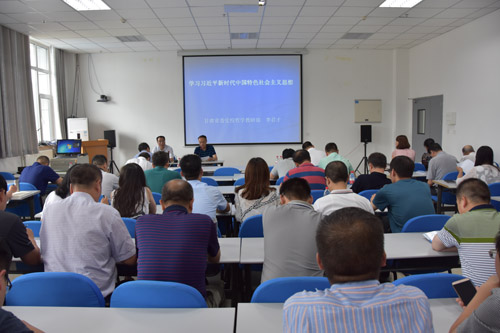 为深入学习领会贯彻习近平新时代中国特色社会主义思想,6月25日下午,兰州兽医所举办了学习习近平新时代中国特色社会主义思想专题辅导讲座,邀请甘肃省委党校哲学教研部主任、甘肃省哲学学会副会长、省委讲师团成员李君才教授作题为“学习习近平新时代中国特色社会主义思想”的报告。所党委书记张永光主持报告会。所全体党员、在职职工和在读研究生以及所理论中心组成员(扩大)等聆听辅导报告。