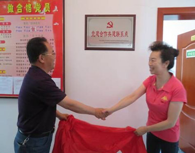 赵海燕副书记与代建聪局长为双方支部“党建共建联系点”揭牌