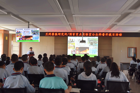 兰州兽医所副所长罗建勋致开幕词,并向师生们简要介绍了重点实验室开展的科研工作,鼓励在场的学生们积极参与科学实践活动,以创新的思维引领科学发展。随后,重点实验室副主任郑海学研究员为作了题为“神奇的微生物”的科普讲座,生动形象得向大家介绍了生活中随处可见的微生物,并列举了大量生动的生活案例,深入浅出地介绍了微生物与健康的关系,提醒大家注意有害微生物的危害性。通过科普讲座,学生们对微生物与健康有了更为科学、全面的认识。