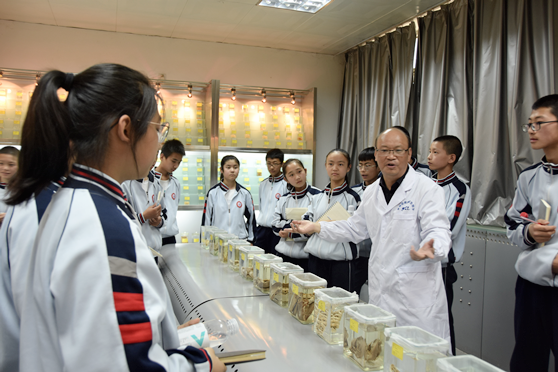 讲座活动结束后,师生们分3组参观了重点实验室寄生虫标本室、中心仪器室及中农威特有限公司中试车间等,学生们对国家重点实验室平台条件、先进设备和创新成果赞不绝口,对科研工作有了更加直观的认识,纷纷表示收获颇多。在参观寄生虫标本室时,重点实验室副主任朱兴全研究员详细讲解了寄生虫病的重要性,并着重介绍了人如何避免感染寄生虫。一进标本室,同学们就被满满一个房间的寄生虫标本震撼了。朱兴全介绍说,这个标本室是全国种类最齐全的寄生虫标本室之一,经过了几代人的努力才建设成现在这个样子。这些寄生虫被科研人员从全国各地采集过来,固定在标本缸,形态各异。同学们屏息凝视、驻足观看,聆听精彩讲解。