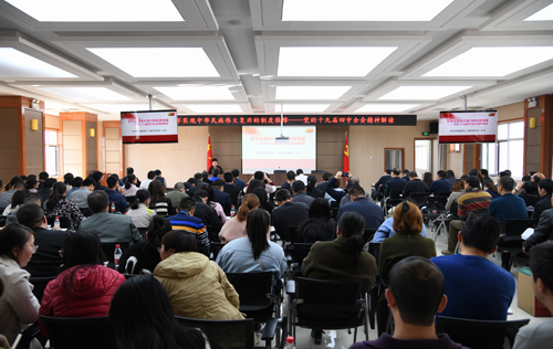 为深入学习领会党的十九届四中全会精神,11月15日下午,兰州兽医所党委举办了党的十九届四中全会精神专题辅导讲座,邀请中共甘肃省委党校中共党史教研部副主任、甘肃省委讲师团成员王锐教授来所作题为“筑牢实现伟大复兴的制度根基”的报告。讲座由党委副书记、所长殷宏主持。所理论中心组成员(扩大)和全体党员等聆听了辅导报告。