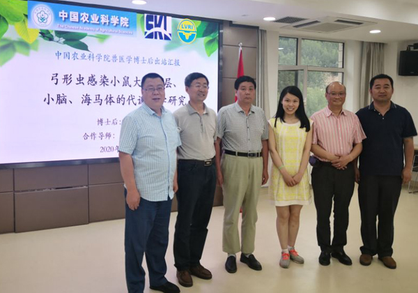 在出站报告会上,朱兴全研究员简要介绍了各位评审专家,介绍了马君博士后的基本情况及在站期间科研工作情况。马君博士后汇报了《弓形虫感染小鼠大脑皮层、小脑、海马体的代谢组学研究》的主要进展及已取得的科研成果。与会评审专家从项目选题、研究方法、数据分析、报告撰写等各方面对马君博士的研究工作进行了评价、提出了问题,马君博士一一做了回答。