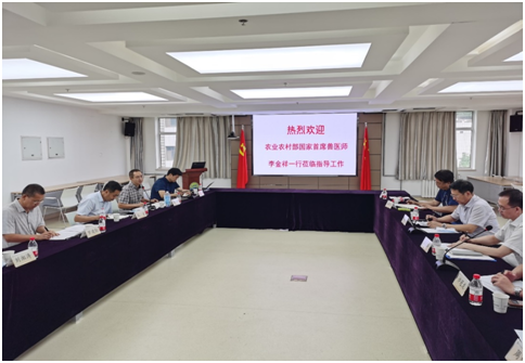 2020年7月8日,农业农村部李金祥国家首席兽医师、农业农村部畜牧兽医局陈光华副局长、农业农村部办公厅许冠龙处长和中国兽医药品监察所赵启祖处长等一行到兰州兽医研究所调研非洲猪瘟疫苗研究情况,甘肃省畜牧兽医局周生明副局长、张伦恭副处长参加调研。