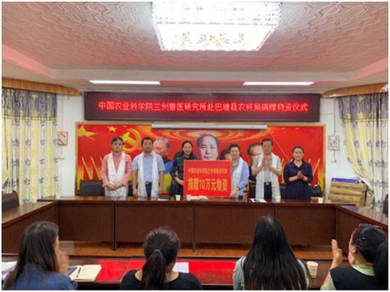7月15日下午,科技扶贫工作队到达巴塘县后第一时间召开了由巴塘县农牧农村和科技局局长格桑梅朵、副局长格绒卓玛以及其他农业科技人员参加的帮扶工作座谈会,会上赵海燕副书记和所长助理付宝权同志详细向格桑梅朵局长了解了巴塘县畜牧养殖以及动物疫病流行情况并讨论了下一阶段扶贫工作计划。赵海燕副书记代表兰州兽医研究所向巴塘县捐赠了价值约10万元的动物疫病防控物资。